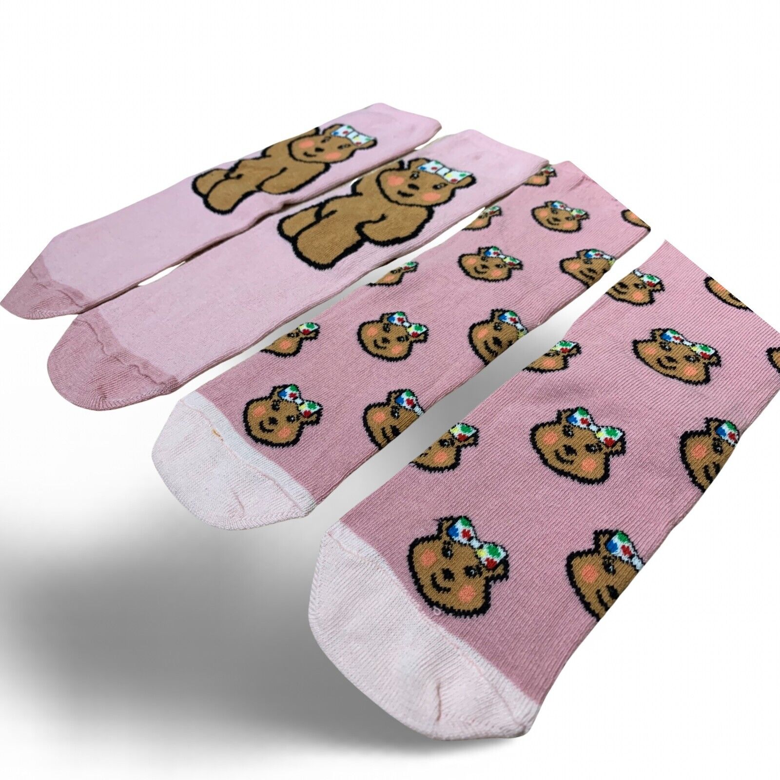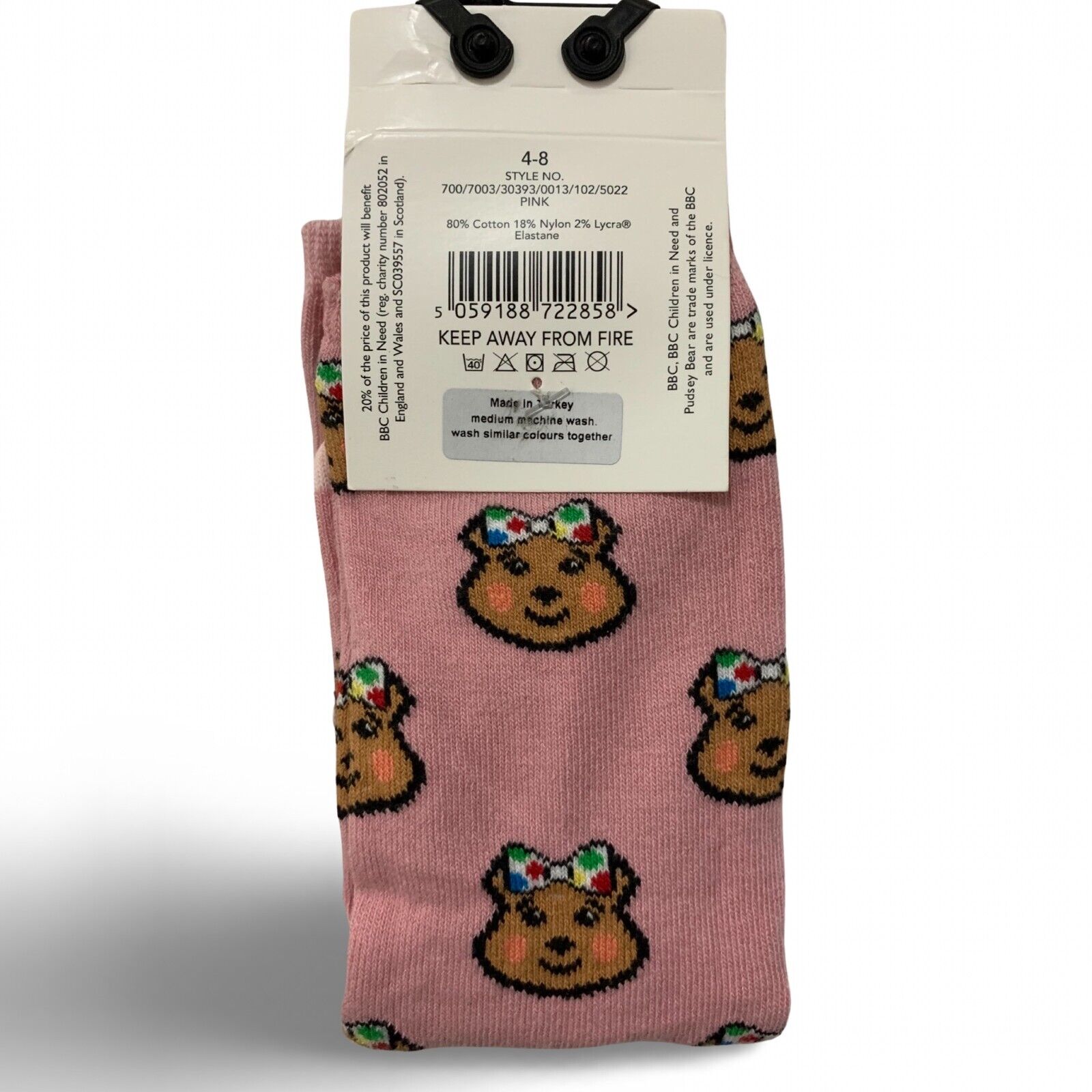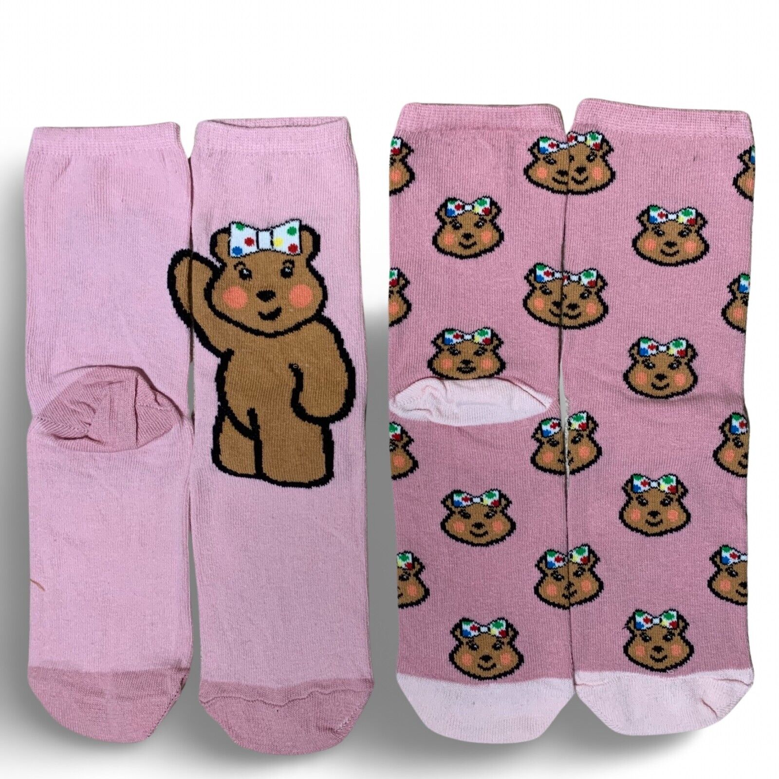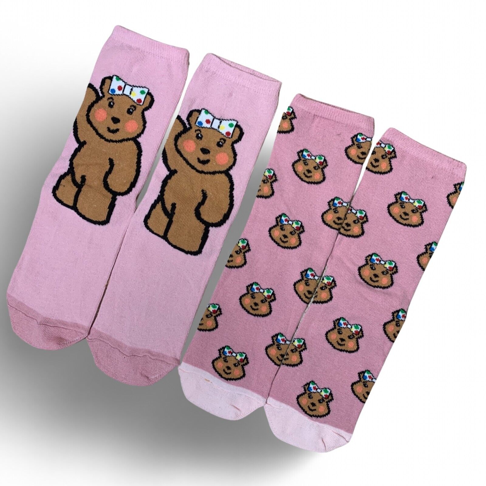 2 Pairs Ladies Pudsey Bear Pink / Blush Pink Bear Character Socks – Size 4-8