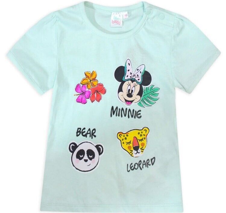 Baby Girls Minnie Mouse T-Shirt Top Grey Mint Pink Disney Baby Tops 3-24 Months