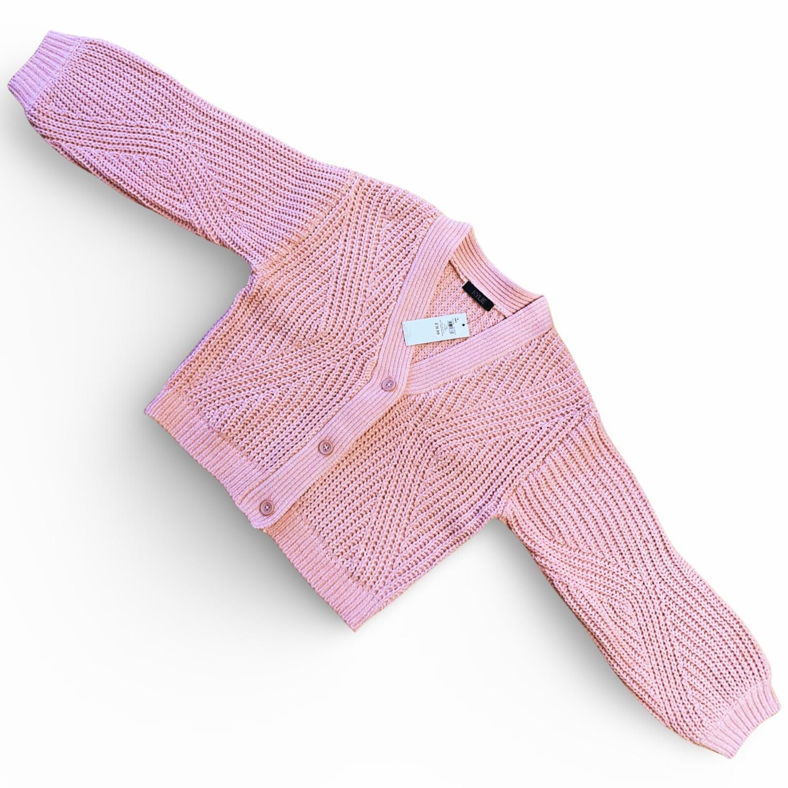 Girls Pink Long Sleeve Knitted Buttoned Cardigan V Neck Fluffy Soft Touch Top