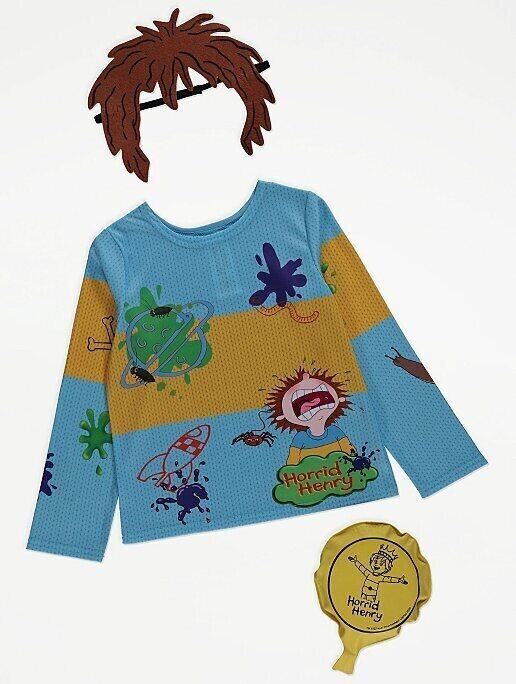 Get ready to transform your little boy into the mischievous Horrid Henry with this fancy dress costume. The outfit includes a blue top, Horrid Henry hair and even a whoopy cushion for added fun. Made from 100% polyester, this costume is sure to bring plenty of laughs and smiles to any occasion. Perfect for boys aged 9-10 years, this Horrid Henry costume is great for fancy dress parties or even just for playing at home. The costume is officially licensed by Novel Entertainment. Don’t miss out on the chance to bring some Horrid Henry fun into your child’s life!