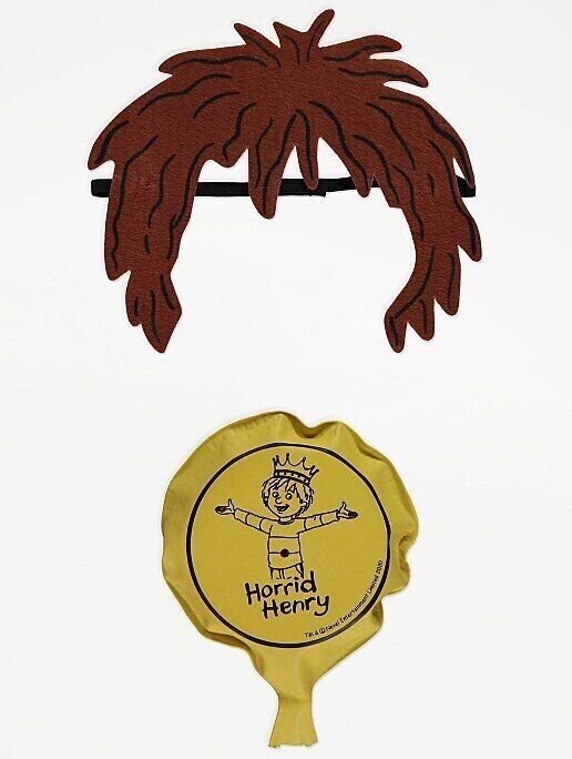Kids Boys Horrid Henry Costume Fancy Dress Top + Hair + Whoopy Cushion 9-10 Yrs