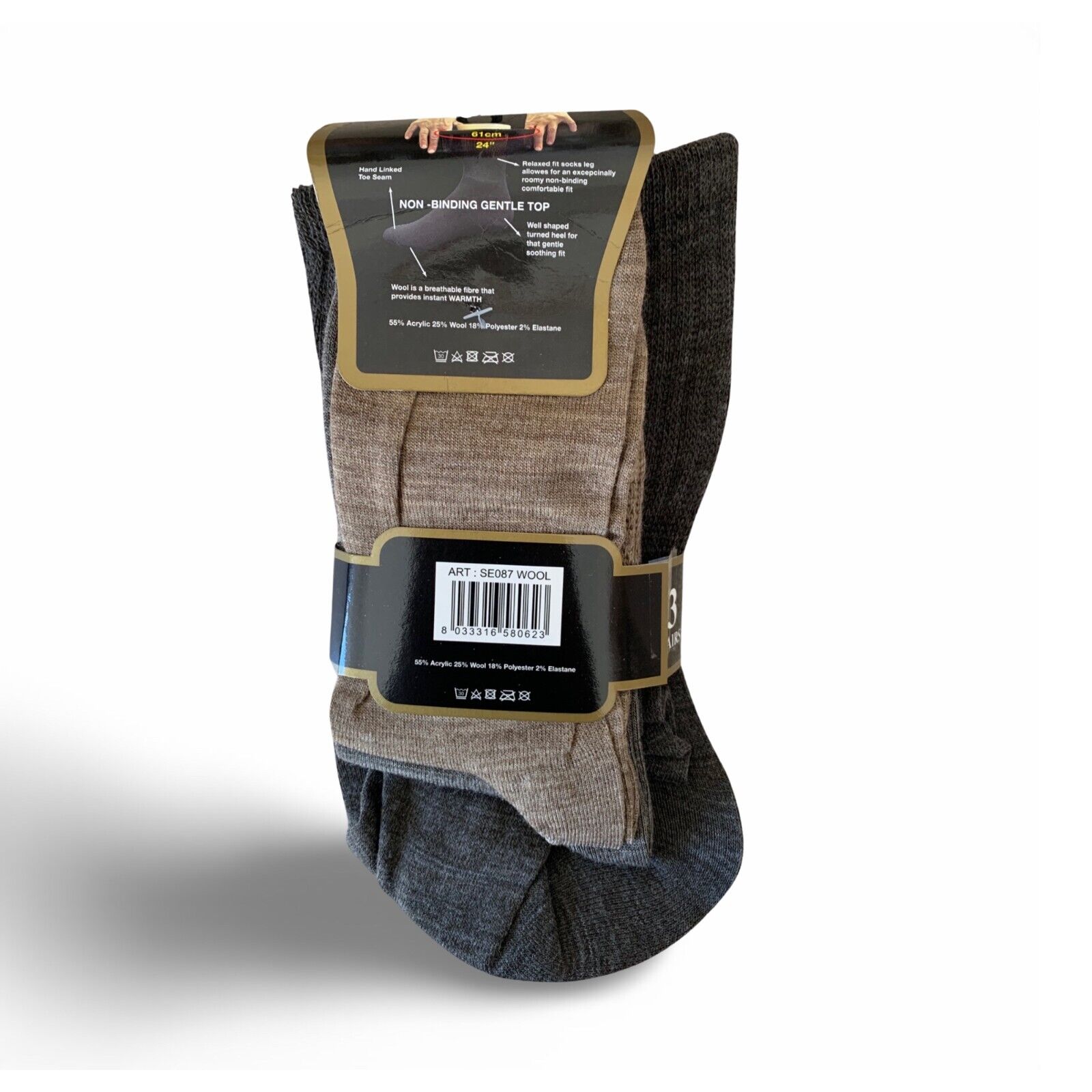 Mens Extra Wide Lambs Wool Blend Non Elastic Loose Wide Fitting Top Socks 6-11