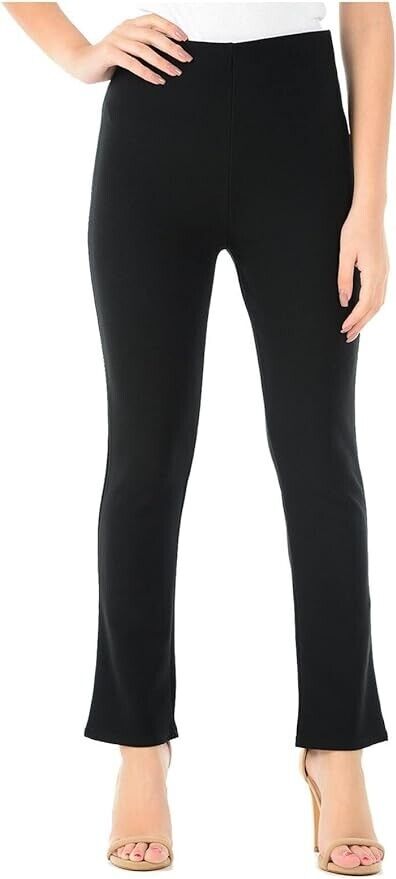 Womens Ladies Black Bootleg Work Elasticated Stretch Ribbed Trousers Size 8-20