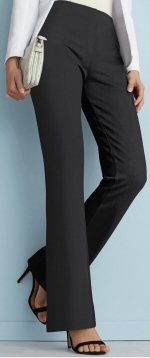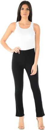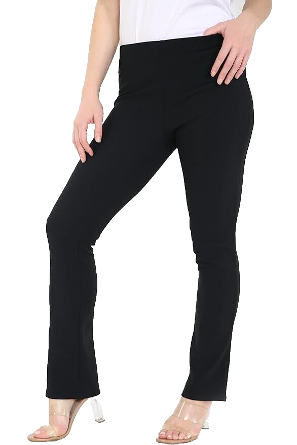 - A Classic In Style, stylish women’s trousers Full black Elasticated Waist Ribbed Bootcut Trouser for women that are easy to put on and take off with a slimming waist and slimmer fit through the hip and thigh.