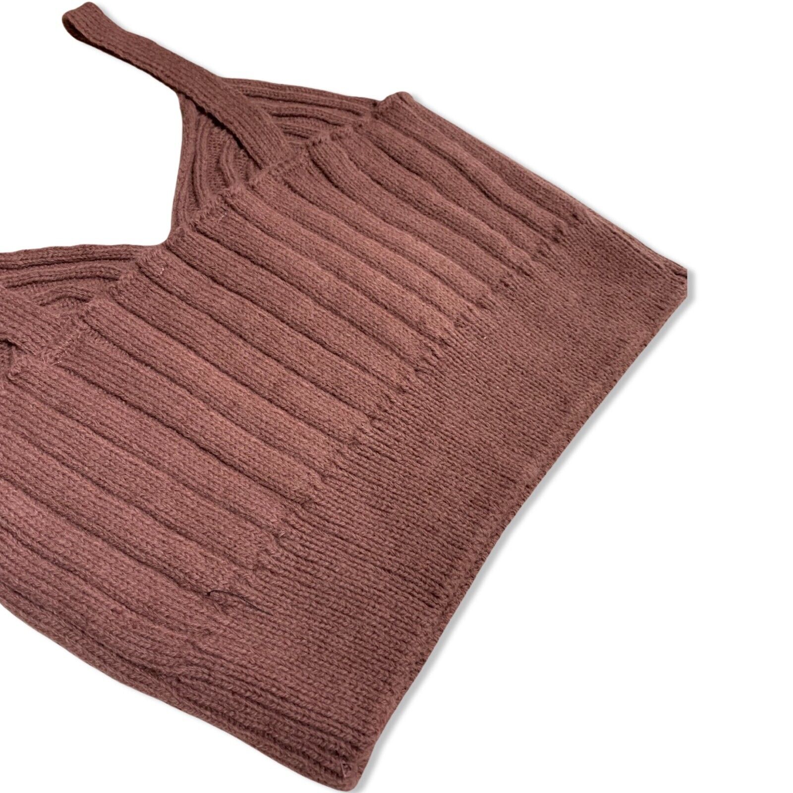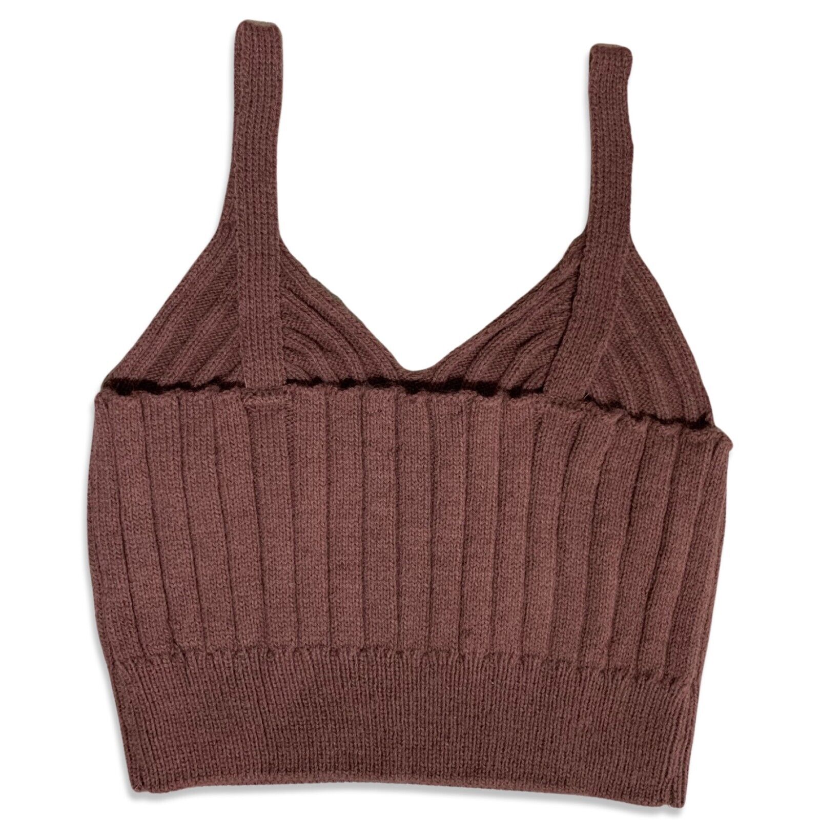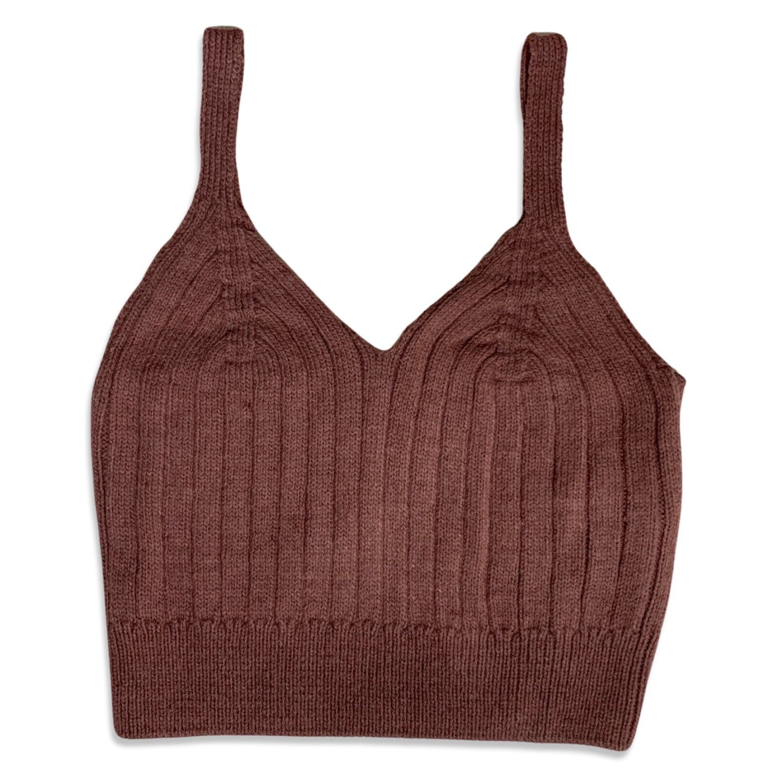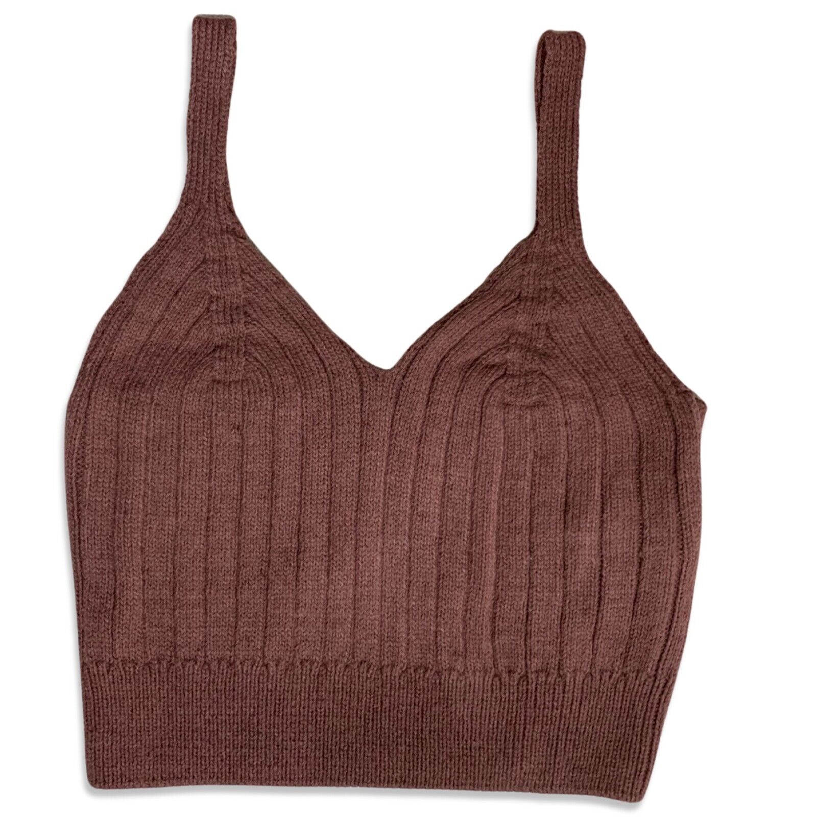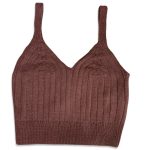 Ladies Brown Ribbed Knitted Crop Vest Top Womens Crop Top Sleeveless Strap Vest Sizes UK8-18